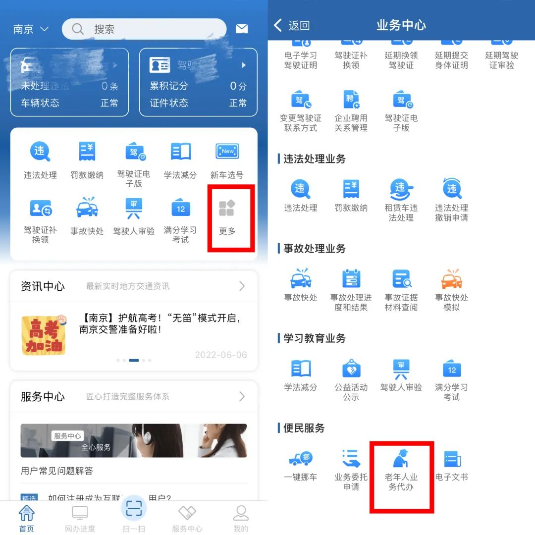 60周岁以上的老人,如果没有“交管12123”APP账号的,亲友可以使用自己的账号为老人代办业务、系统会对老年人进行实人认证,需要上传老年人的内地居民身份证或者港澳台居民居住证,审核后予以办理业务。 驾驶证转入换证、补换领驾驶证、免检车申领检验标志、补领检验合格标志、补换领机动车行驶证、补换领机动车号牌。 首先亲友登录“交管12123”APP,点击【更多】——【便民服务】——【老年人业务代办】